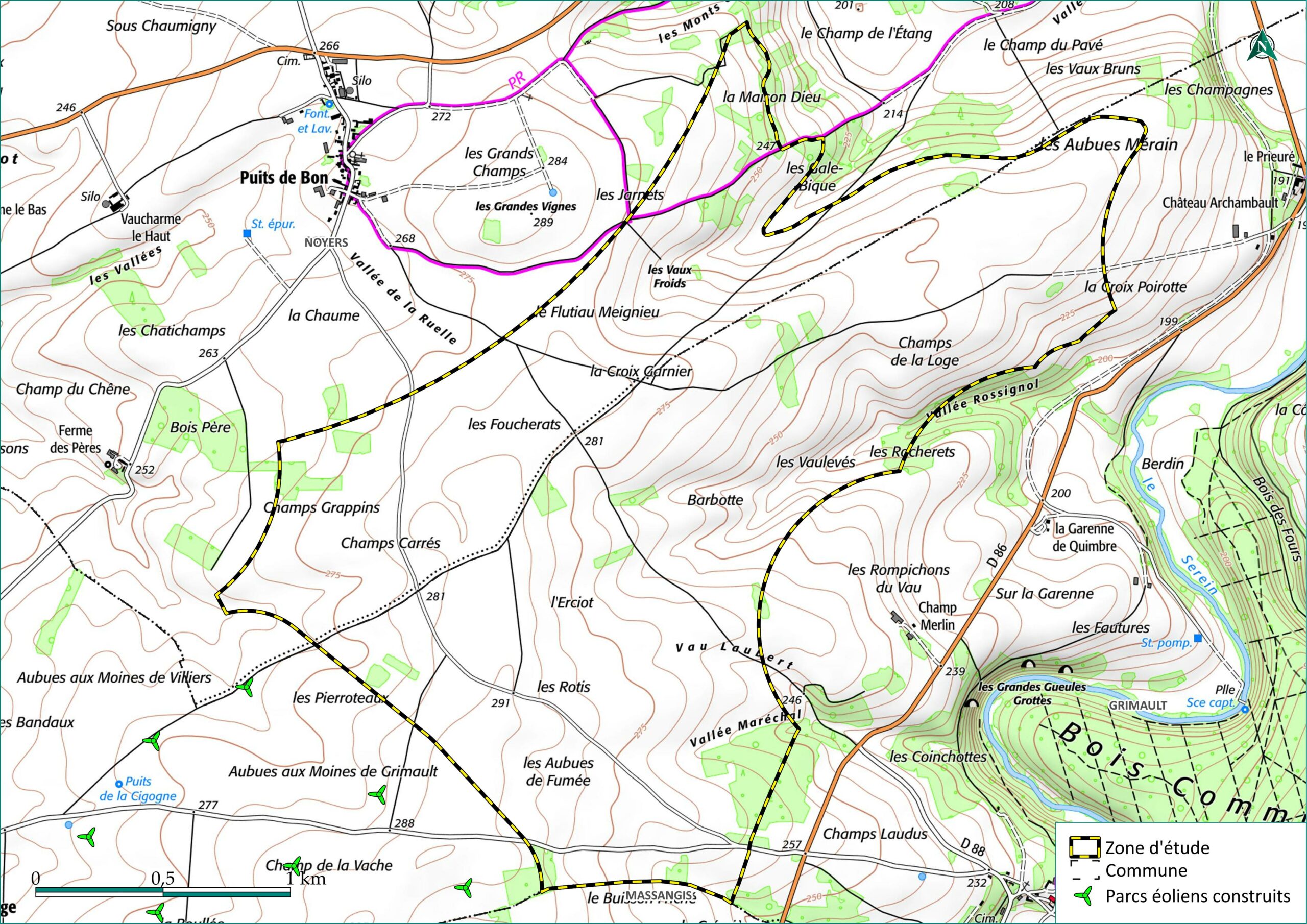 Le projet éolien de Grimault est situé sur la commune de Grimault, à l’ouest de la route départementale 86 et en continuité du parc éolien existant.