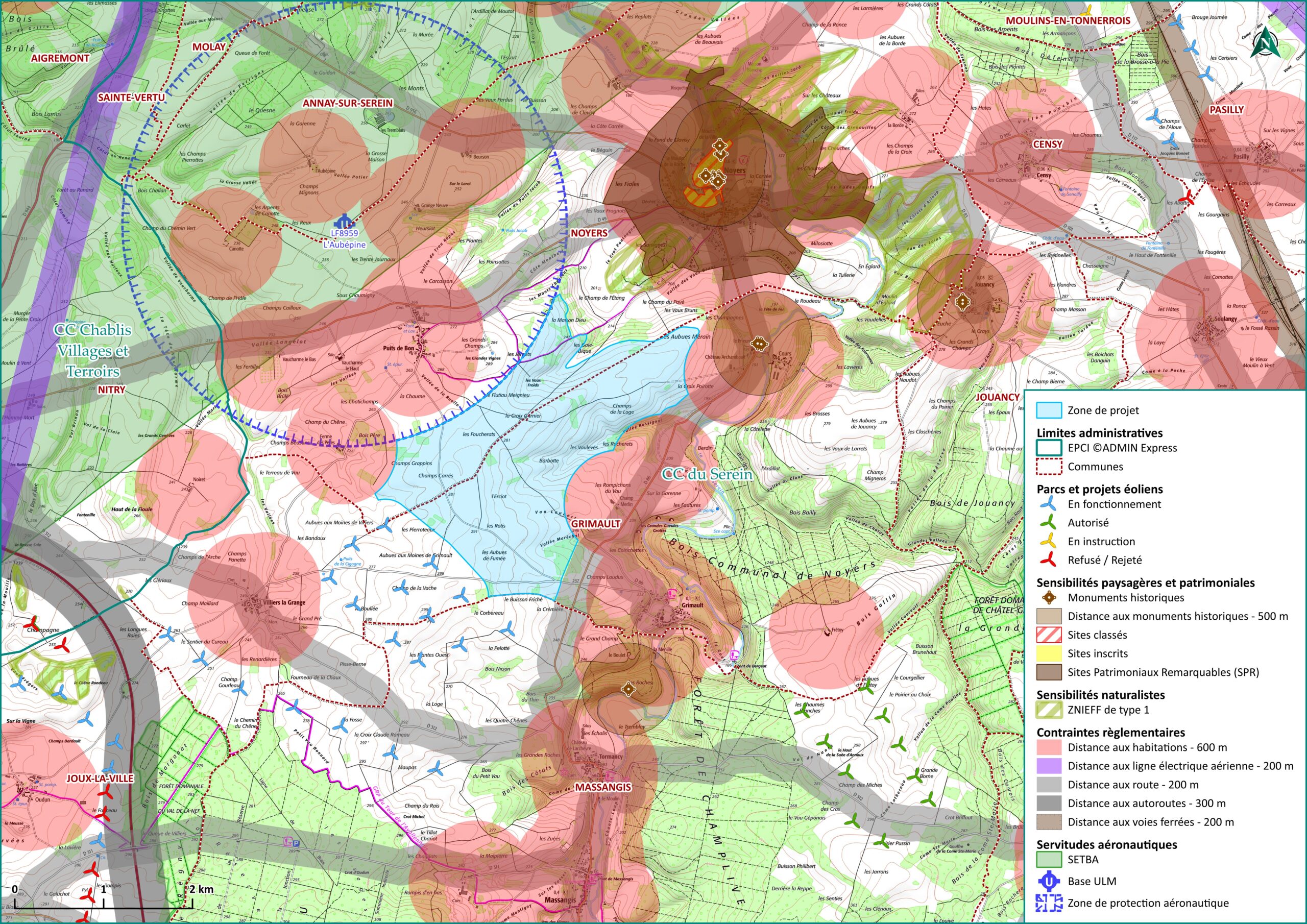 Le département de l’Yonne dispose de nombreux atouts pour développer une activité de production d’électricité d’origine éolienne. Le secteur d’étude se caractérise par des vents entre 6,5 et 7 m/s à 100 m, particulièrement propices pour le développement de projets éoliens.